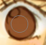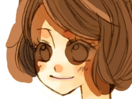 途中経過。(影とかまだちゃんと塗ってないですが説明のためちょっと省きます。) さらに明るいブラウン(暗めの肌色に近いくらい)で余分なところを削っていきます。 ![]() 最初の暗い茶色をわざとはみ出したまま残したりしてます。 そのあと消しゴムでいらないところを削ります。 部分的にさらに暗い茶色を入れたり、明るい茶色を入れたりして塗っていきます。 塗り終わりはこんな感じ。わかりやすく肌を塗ったレイヤーを非表示にしてあります。 ![]() 目を塗ったあとでスクリーンショット取ったので目も塗り終わってますが; 額や首などにも茶色を乗せて、髪の影になるようにしてます。 ▼ 続いて同じレイヤーで目を塗りますが、こういう全身の絵のときは あまり瞳に凝って塗りません; ![]() まず髪の毛に使っている色から適当にスポイトで拾って 目を塗ります。 マウスだと大きい丸筆が一番塗りやすいです〜 ![]() 次に真ん中に黒に近い暗いブラウン。 ![]() さっき使った色より若干明るめのブラウン。 で、瞳にハイライトを入れて終了することがほとんどです。 ![]() こんな風に1pixelの筆で影っぽく線を描いたり、ハイライトを描くこともあります。縮小するといい感じにぼけるので。 ▼