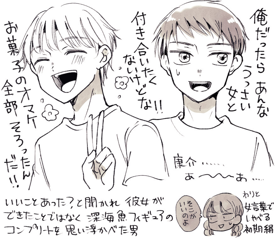 17きっぷは後書きがあったり画像ファイルが統一されてないとひと手間かかるのでやりやすい話から移行させてます。これは14話を久々に読み返して彰吾と康介が平和でかわいいなー笑 になった落書き