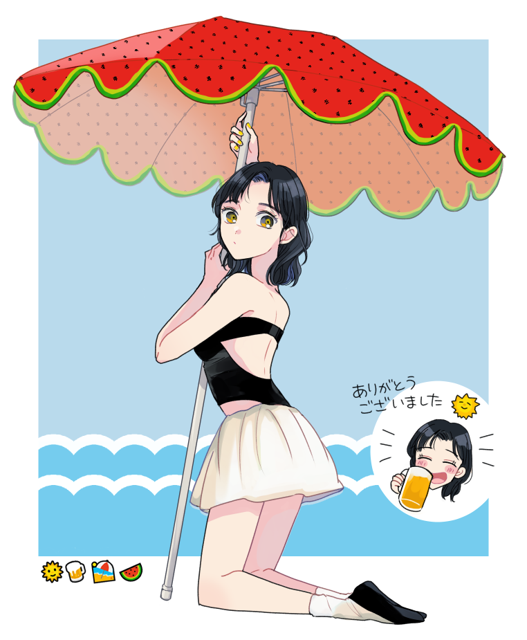 腰痛の苦しみをブログに綴ったからなのかお盆あたりにたくさん絵文字が届いていて本当にありがとうございました…太陽さんさんビーチにスイカとビールでかわいすぎるサマー画面に