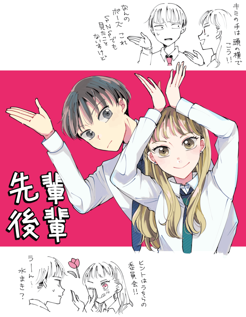 結局まとめのページがまだ公開できてないんですがブログの絵ストックももうないのであげておきます!先輩によるポーズは🌷をイメージしたようです
