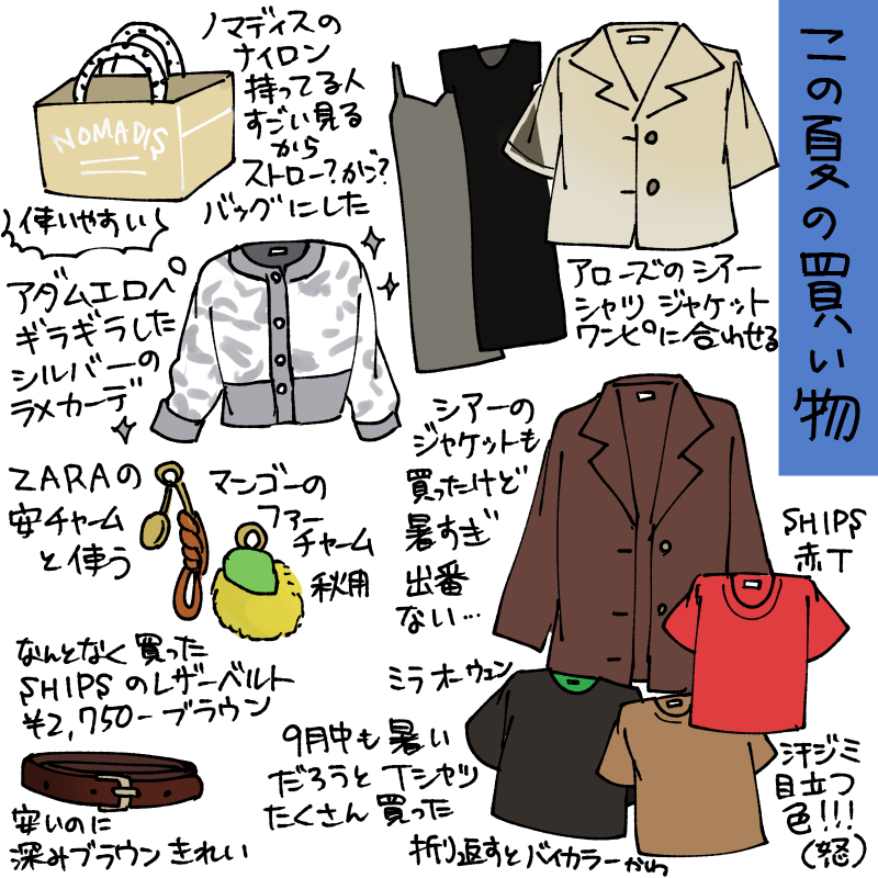 買い物記録を描くとそういえばこんなの買ったな…みたいな気付きがあるので助かります。セール時は次シーズンに着るような服も選ぶので忘れがち