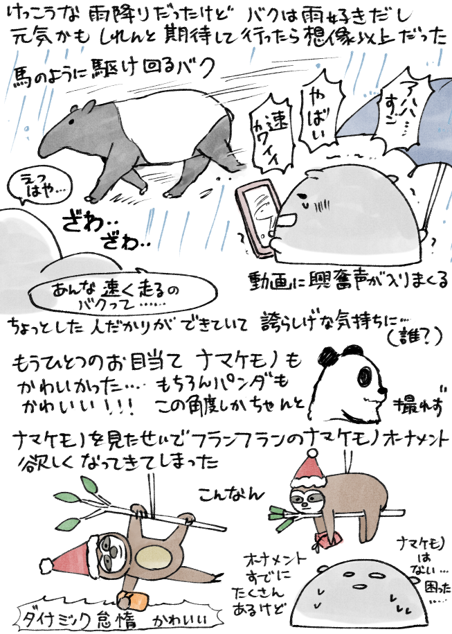 先月和歌山に行ってきまして、アドベンチャーワールドめちゃくちゃよかったです。なかなか遠かったけど行ってよかった…!!パンダ様のおかげで同じ白黒のバクもグッズ面でだいぶ恩恵を受けていました(もうパンダに頭が上がらない)梅干と梅酒と経由した大阪でうまいもんたくさん買って大満足です